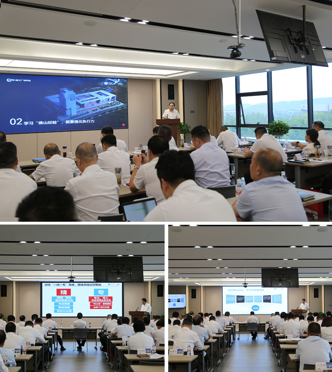 “我們要充分借鑒佛山‘把產品做活、把新意做廣’經驗,結合自身長期積極服務地方黨委政府、密切聯系群眾以及在鄉鎮融媒體發展等方面的良好基礎,努力打造有廣電特色的數字鄉村建設樣板,賦能鄉村產業振興,提升公司政企業務競爭力。”“我們要深化運用佛山‘把大屏做足’經驗,圍繞‘提升用戶體驗、提升經營質效’工作目標,打造沉浸式慢直播宣傳品牌,探索全新的‘用電視’服務模式和新媒體直播帶貨業務模式。”……